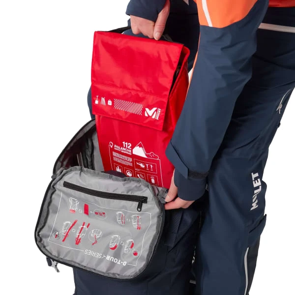 With a storage volume of 30 liters, this model allows you to carry all the gear you need and access it quickly. It has a removable safety pocket that stores shovels, probes and a clear reminder of the steps to take in case of an avalanche. With its adjustable shoulder straps and padded back panel, this bag is very comfortable to carry. It also features a clever helmet pocket on the shoulder strap in addition to the hydration system compartment.